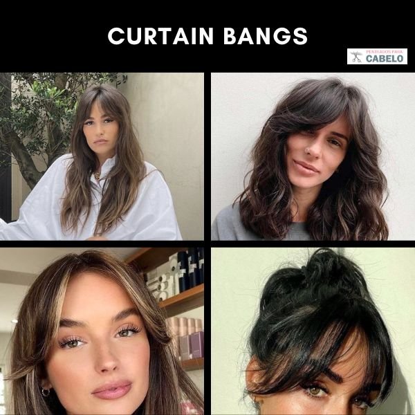 7. As tendências de cabelo atuais incluem curtain bangs porquê uma opção atemporal que combina com cortes longos, médios ou curtos.